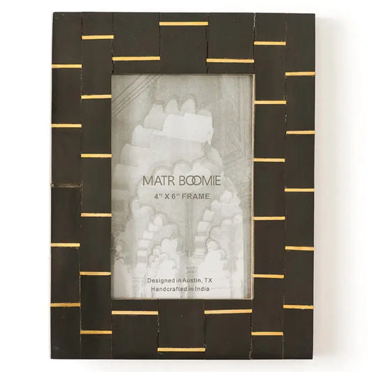 Matr Boomie Fair Trade: Andhera Dash 4x6 Black Picture Frame- Carved Horn, Brass