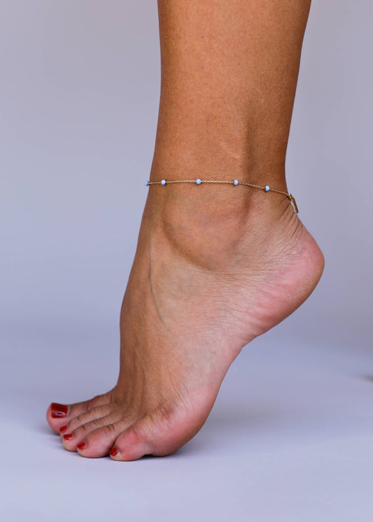 JaxKelly - Enamel and Gold Anklet - 18k Gold Plated - Bermuda Blue
