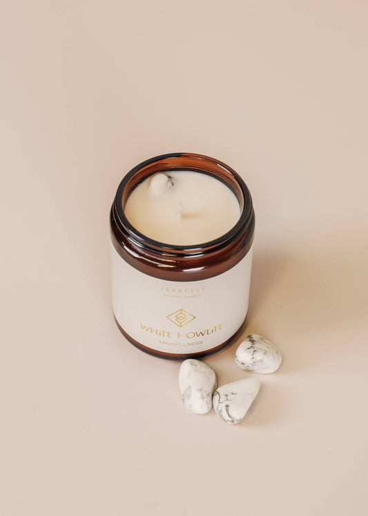 JaxKelly - 9oz Amber Crystal Candles - White Howlite - Mindfulness