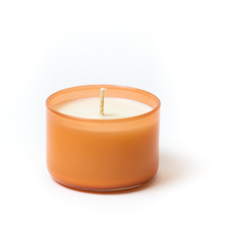 - Mini Glass, 4 oz., Burn Time, 20 Hours. Includes cold foil candle topper.