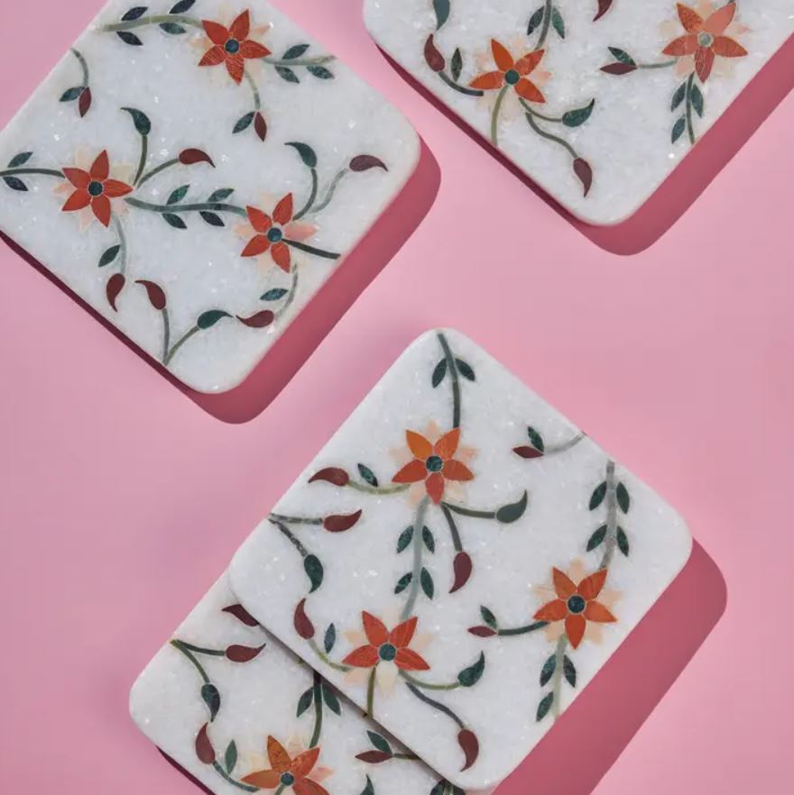 Gauri Kohli: Spring Blossom Marble Coasters, Set of 4