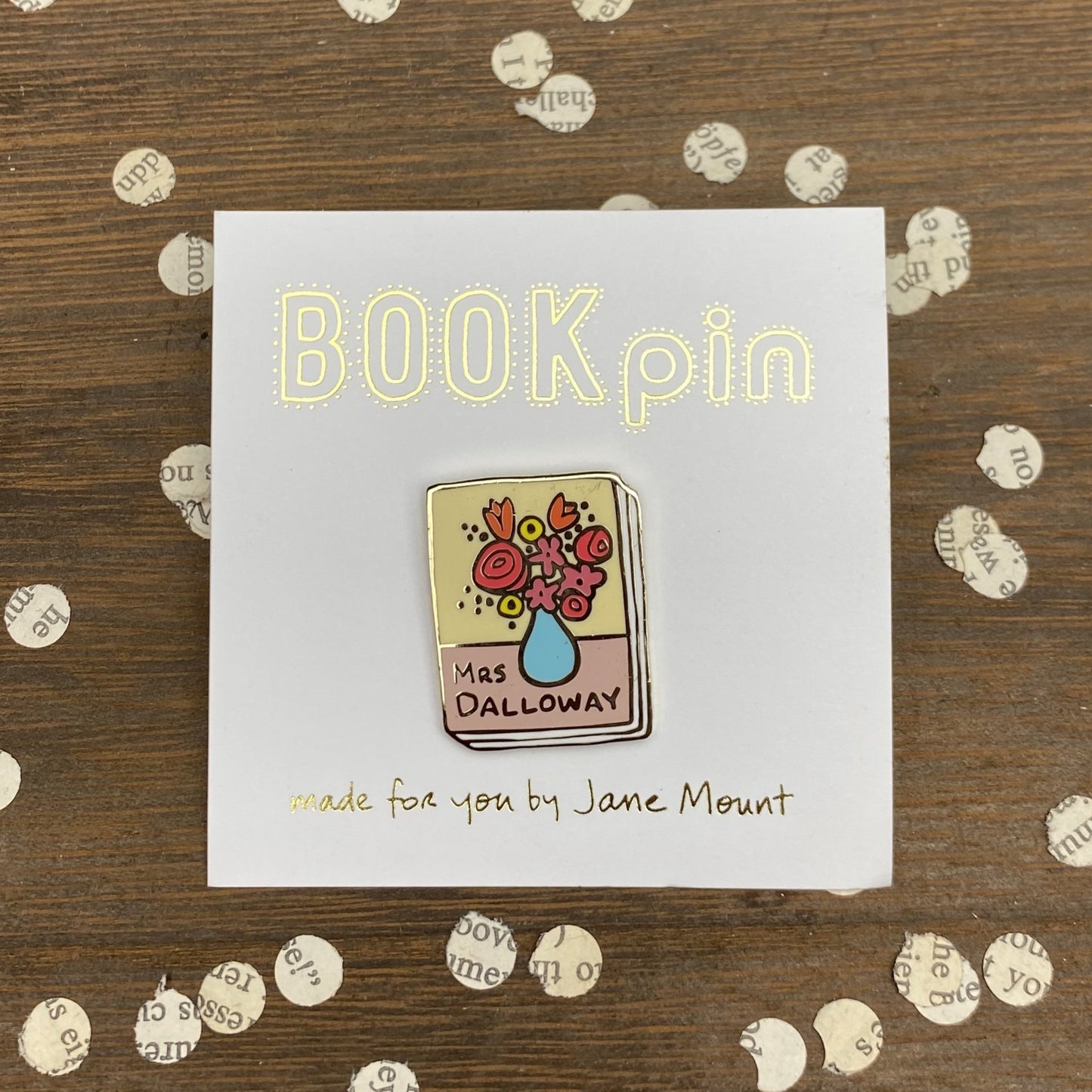 Based on an original drawing by Jane Mount. She says: "With the Book Pins, I'm trying to capture the essence of a book in less than an inch square."