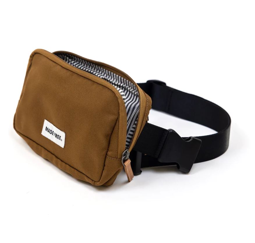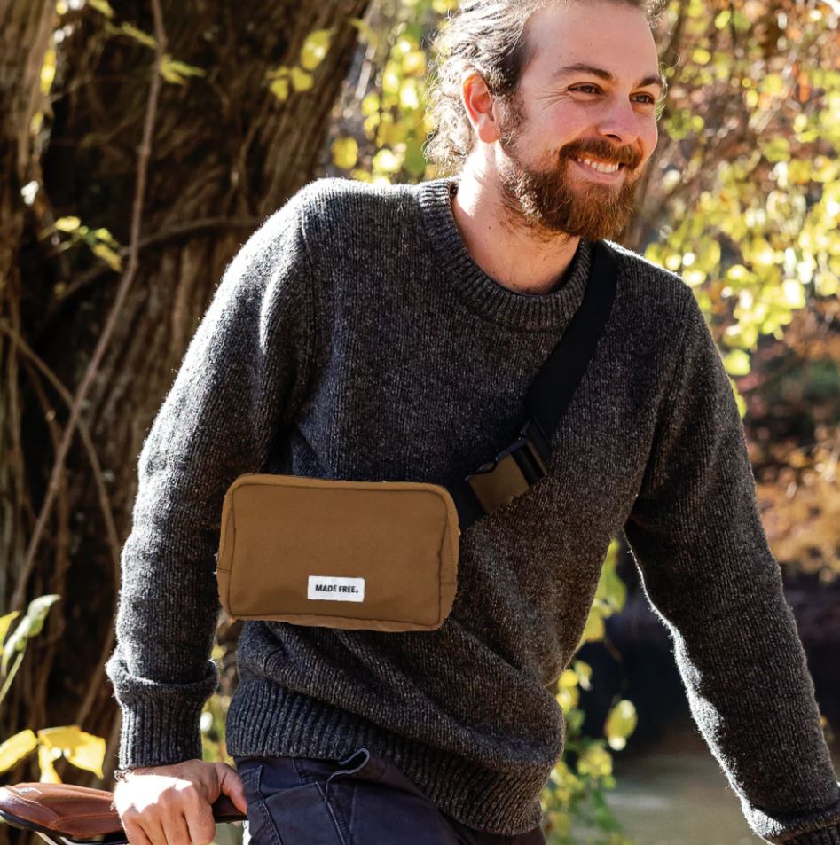 Made with our durable weather-resistant recycled polyester and seatbelt material adjustable strap. Plenty of pockets and features to meet your minimalist needs for phone, keys, wallet and other items on the go. Includes a secure backside pocket.