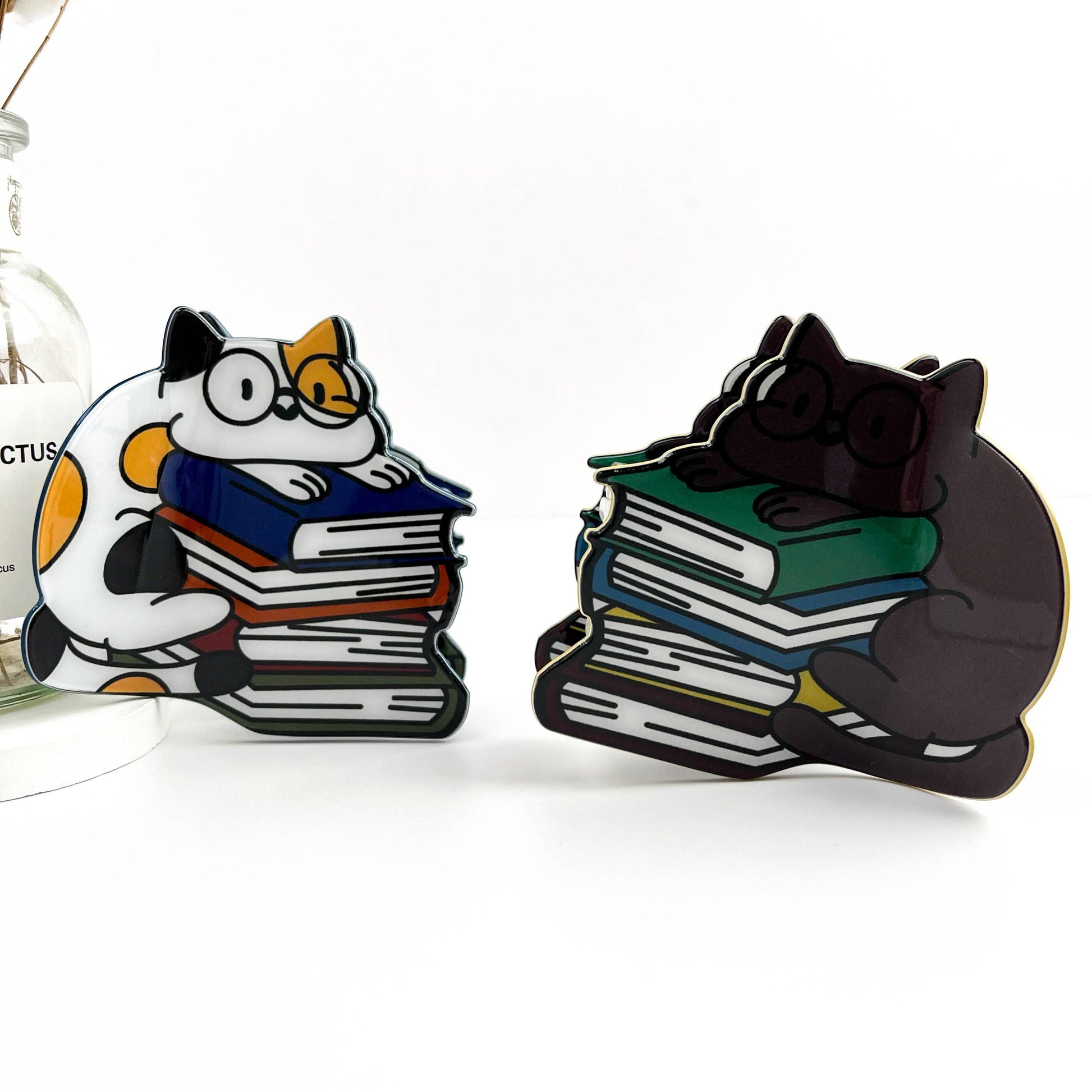 Material - PVC Handling Process- Handmade Size and Weight 7.5cm,35g Product Description: Bring charm to your accessory line with this Studious Cat & Book Hair Claw! Crafted from high‑quality, eco‑friendly acetate, it features an adorable cat perched on a stack of books—perfect for bookworms, students, and cat lovers alike Its sturdy claw grip secures hair effortlessly in styles like half-up knots or casual buns, while the lightweight design ensures comfortable wear all day. A playful yet sophisticated accessory with both flair and function. ✨ Key Features: Whimsical cat reading atop a book stack—instantly charming Made of durable, eco‑friendly acetate material Strong spring mechanism to hold fine to thick hair securely Ideal for fall/back‑to‑school displays, gift boutiques, or literary shops Great for teens, teachers, librarians, and advocacy for reading 🛍️ Display Tip: Pair with other bookish or school-themed accessories—like pencil‑shaped clips or library-inspired