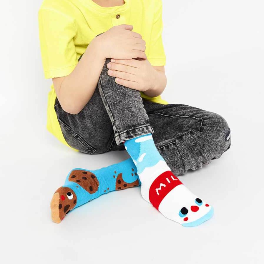 Pals #23 Designed by artist Michelle Romo, Milk and Cookies Pals Socks is a favorite classic food pairing. In fact, dunking cookies into milk is scientifically designed to be delicious! (Hint-both have a chemical additives, emulsifiers). We are SO happy they came together to create tastebud magic. These are standard weight spring socks with non-skid grips on the bottom. Collect all in this yummy series! Standard weight released for spring (Not as heavy as medium weight socks but just as strong)!