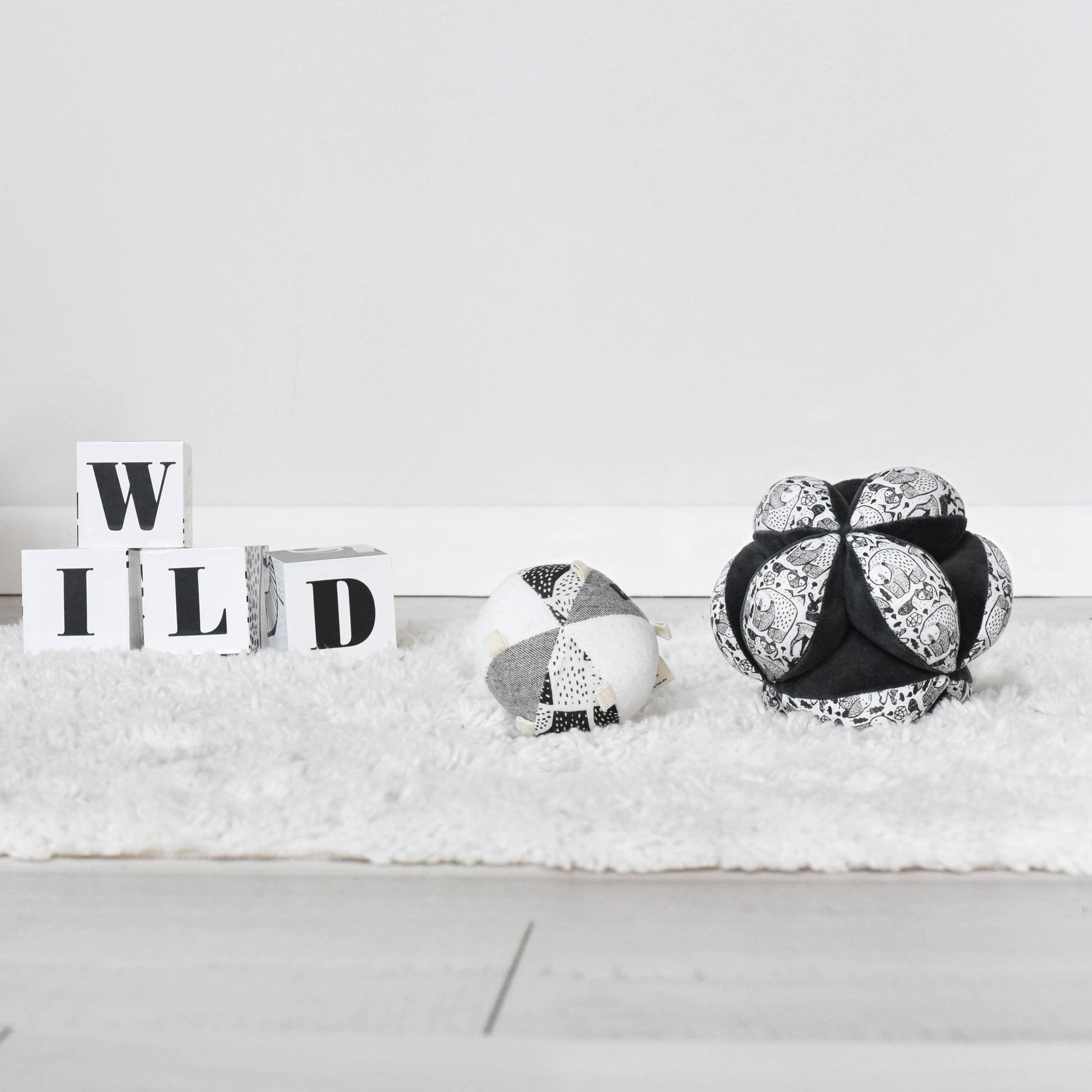 Our sensory Clutch Ball toy is designed to delight your baby's developing senses. Signature high-contrast hand painted graphics grab baby's attention visually, while varied textures provide tactile stimulation. Its beautiful organic shell fabrics and Nordic animal pattern make it the perfect keepsake gift. Also called an "Amish puzzle ball", it was popularized by Montessori educators.